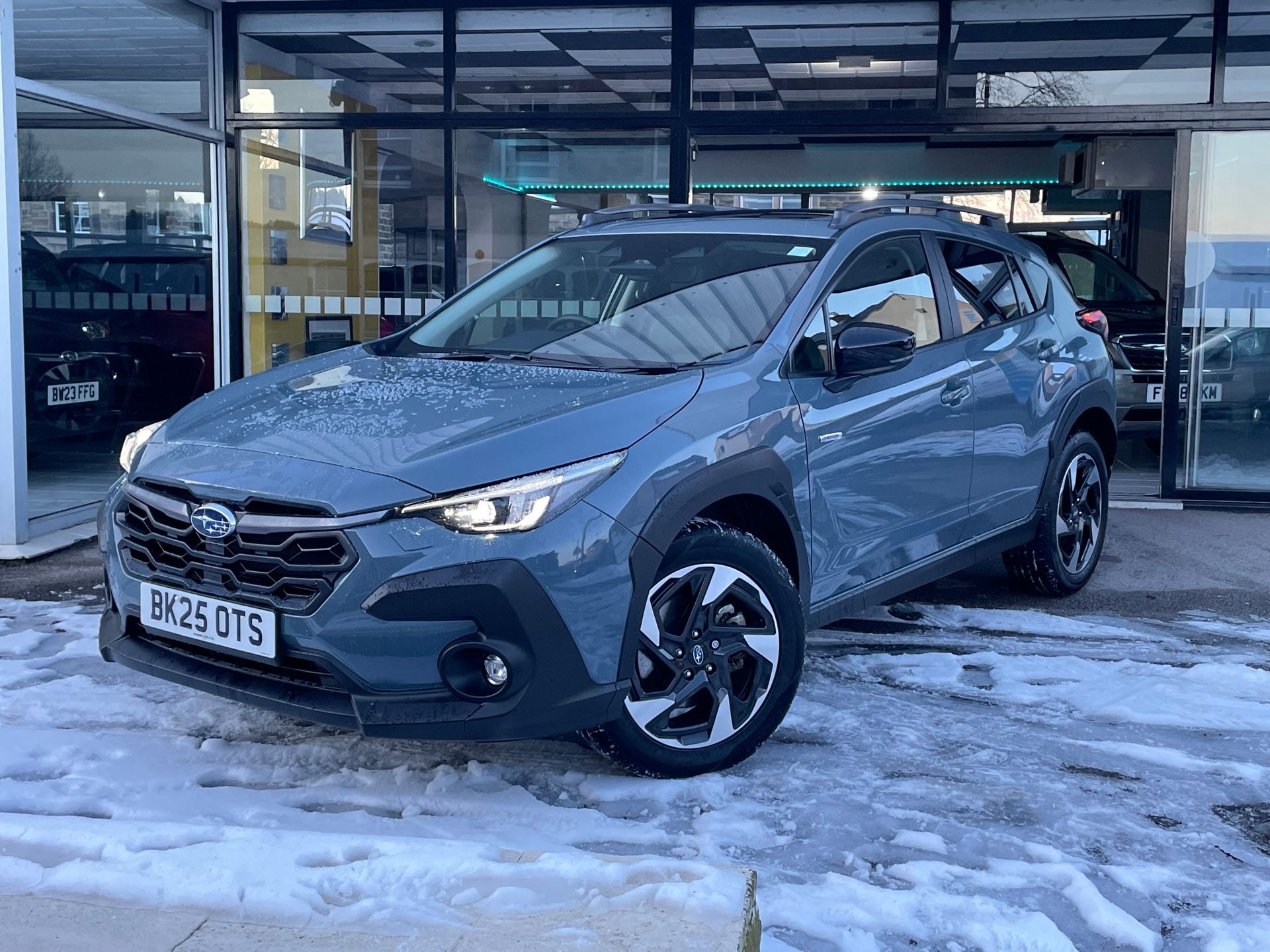 Subaru Crosstrek 2.0 e-Boxer Touring Lineartronic. 2025 25 Reg. Offshore Blue Metallic , Covering 5500 Miles with Full Service History, Sat Nat, Reversing Camera & Front Camera with Sensor & Automatic Mirrors, Blue Tooth, Alloy Wheels, Fog Lamps, Full Leather Interior, Electric Seats, Heated Seats with Memory Settings, Heated Rear Seats, Heated Steering Wheel, Climate Control, Subaru Eyesight System with Adaptive Cruise Control, C/D Player, Panoramic Sunroof, Power Tailgate, Trip Computer, Hill Decent AWD, Top Spec.